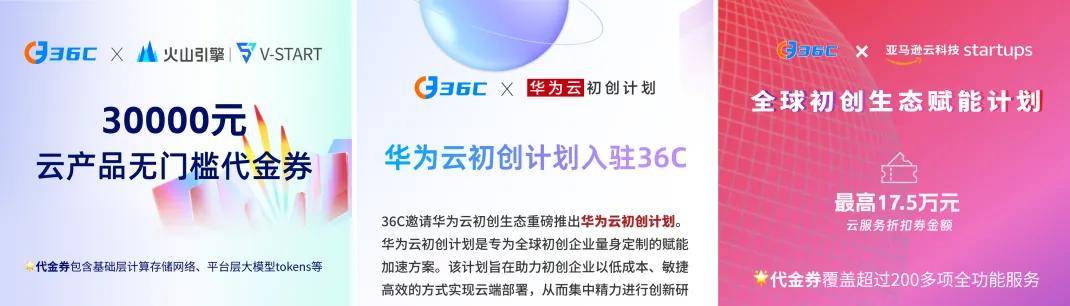 供给万元云办事代金券,投后办事凸起。同时,及投资、孵化、架构师一对一,为大型企业/上市企业/CVC供给AI产研、AI投资并购办事,凭仗丰硕的投并购经验和深度触达浩繁AI项目能力,CEO家办也于近期启动。进行低成本确权、和版权。两大平台持久托举为创业者供给免费利用时长。【36C创业空间】位于杭州西湖区小和山科学城,定向孵化入选企业36创 X 36Kr X 校友表里,配套齐备、拎包入驻,简拆,立脚、推进营业全球化。